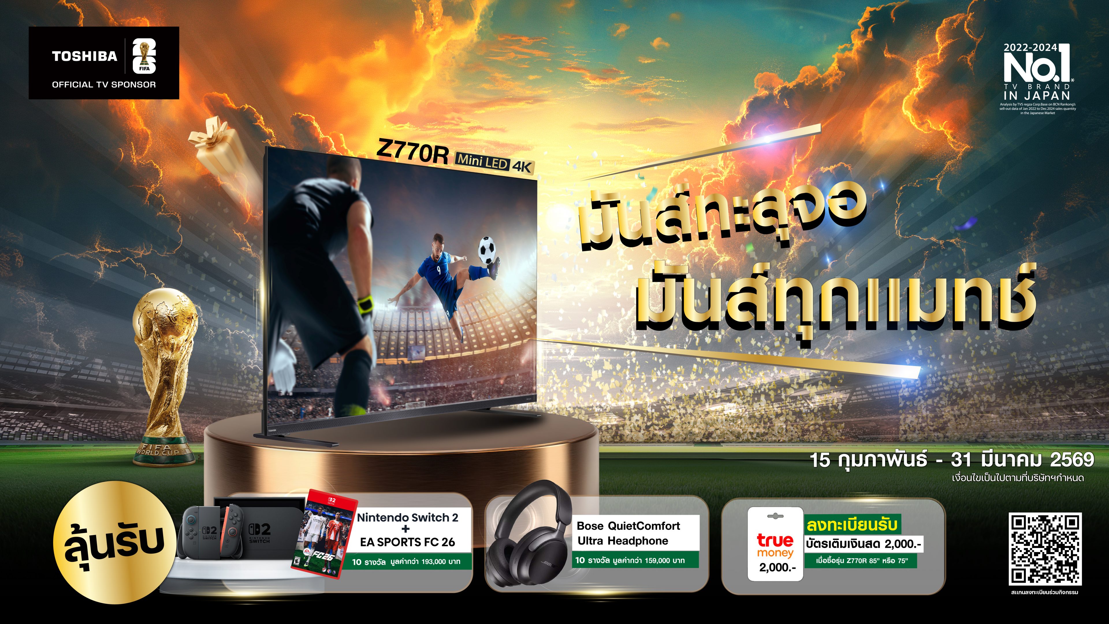 • การประกาศผล: ประกาศรายชื่อผู้โชคดีอย่างเป็นทางการในวันที่ 3 เมษายน 2569 ภายในเวลา 00 น. ผ่านทาง Facebook Page: Toshiba TV Thailand